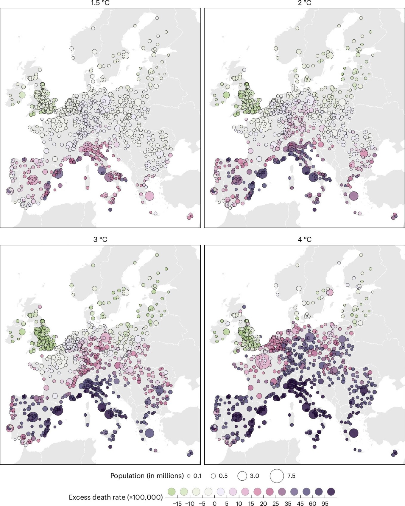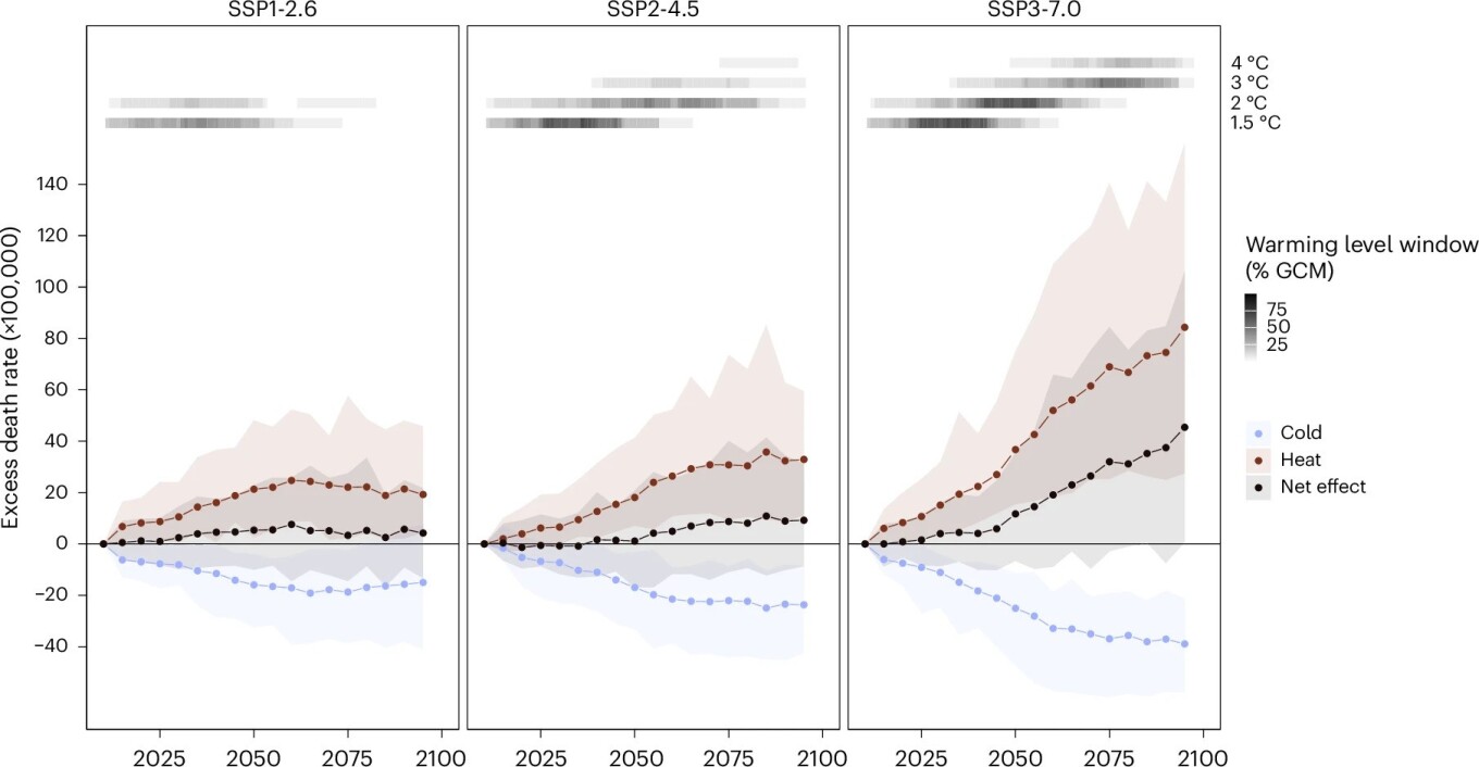 Ακόμα και στο καλύτερο σενάριο μετριασμού της κλιματικής αλλαγής οι ερευνητές υπολογίζουν αύξηση των θανάτων που σχετίζονται με την αυξημένη θερμοκρασία, κυρίως στη νότια Ευρώπη. Σε όλα τα σενάρια κλιματικής αλλαγής που μελετήθηκαν, εντοπίστηκε ότι η αύξηση των θανάτων που σχετίζονται με τη ζέστη θα υπερβεί τη μείωση των θανάτων που σχετίζονται με το προβλεπόμενο λιγότερο κρύο. Χαρακτηριστικό είναι το ότι στο χειρότερο σενάριο, κατά το οποίο οι εκπομπές διοξειδίου του άνθρακα θα διπλασιαστούν ως το 2100, η ερευνητική ομάδα εκτιμά ότι οι αλλαγές στο κλίμα θα μπορούσαν να οδηγήσουν σε πάνω από 2,3 εκατομμύρια επιπλέον θανάτους σχετιζόμενους με τη θερμοκρασία ως το 2099.