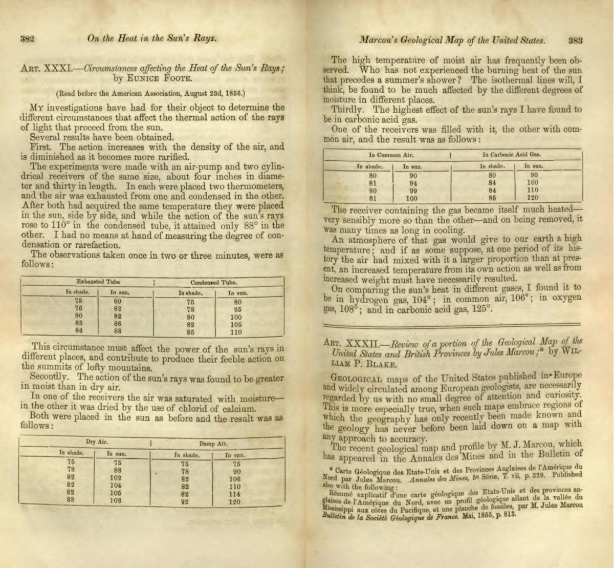 Η ανακάλυψη οδήγησε τη Γιούνις Νιούτον Φουτ στο συμπέρασμα ότι, αν ο αέρας περιείχε μια μεγαλύτερη αναλογία διοξειδίου του άνθρακα από ό,τι σήμερα, θα ακολουθούσε μια αύξηση της θερμοκρασίας.