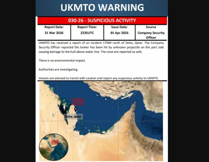— UKMTO Operations Centre (@UK_MTO) April 1, 2026